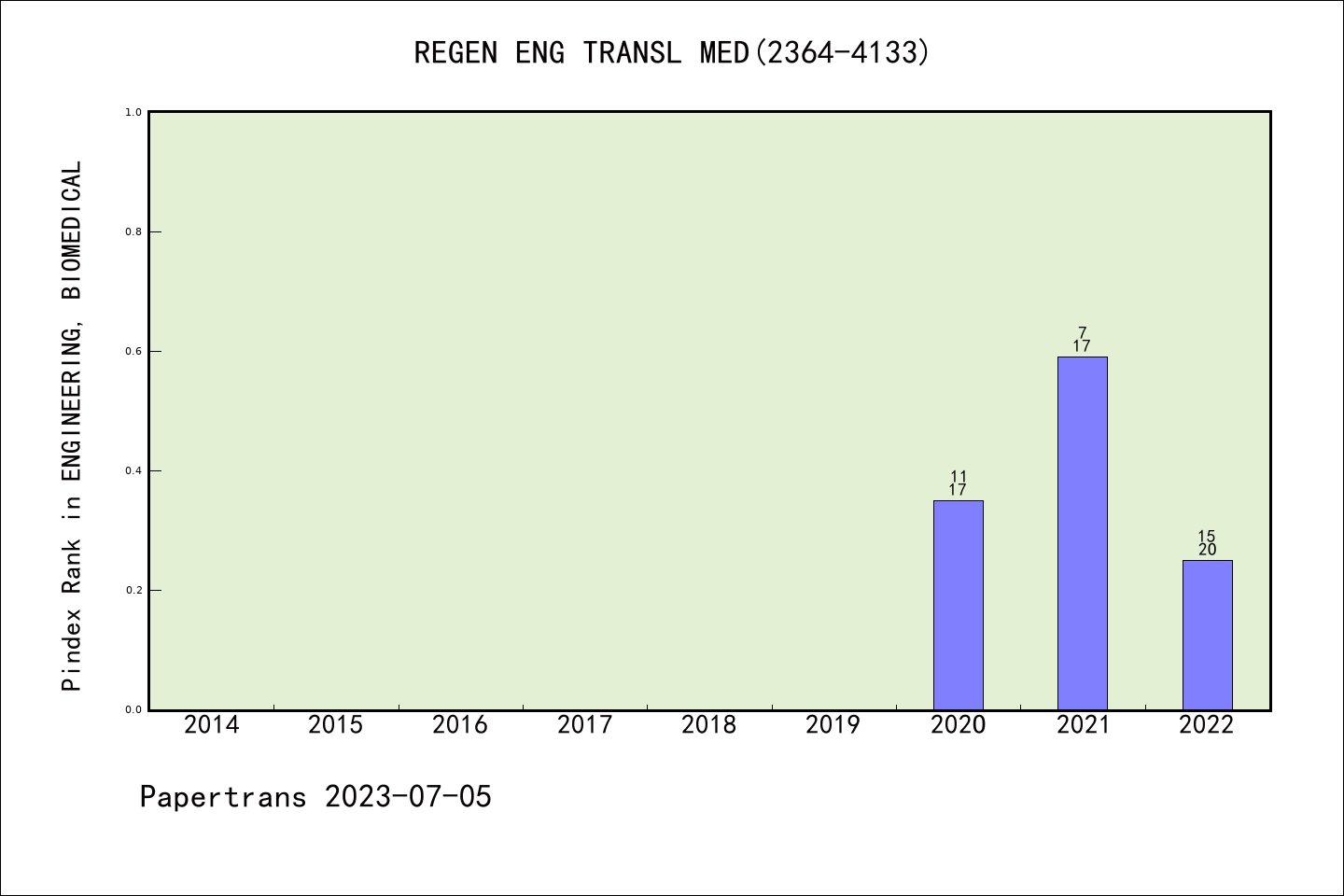ESCI期刊Regenerative Engineering and Translational Medicine历年派博系数(Pindex)