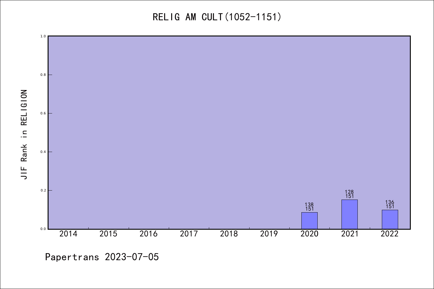 AHCI期刊RELIGION AND AMERICAN CULTURE-A JOURNAL OF INTERPRETATION历年派博系数(Pindex)