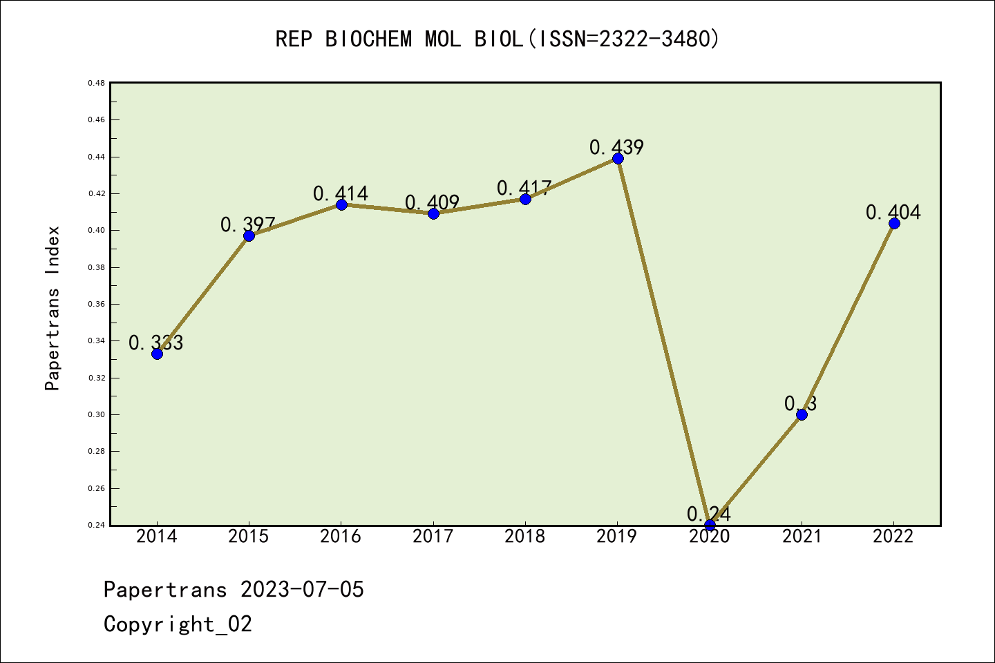 ESCI期刊Reports of Biochemistry and Molecular Biology历年派博系数(Pindex)