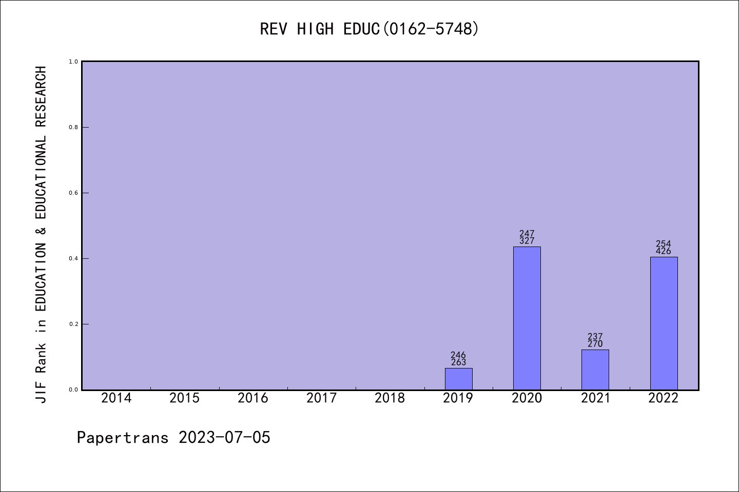 REVIEW OF HIGHER EDUCATION拒稿率学科排名@SSCI教育与教育研究