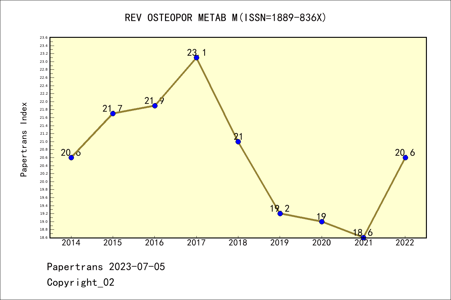 ESCI期刊Revista de Osteoporosis y Metabolismo Mineral历年派博系数(Pindex)