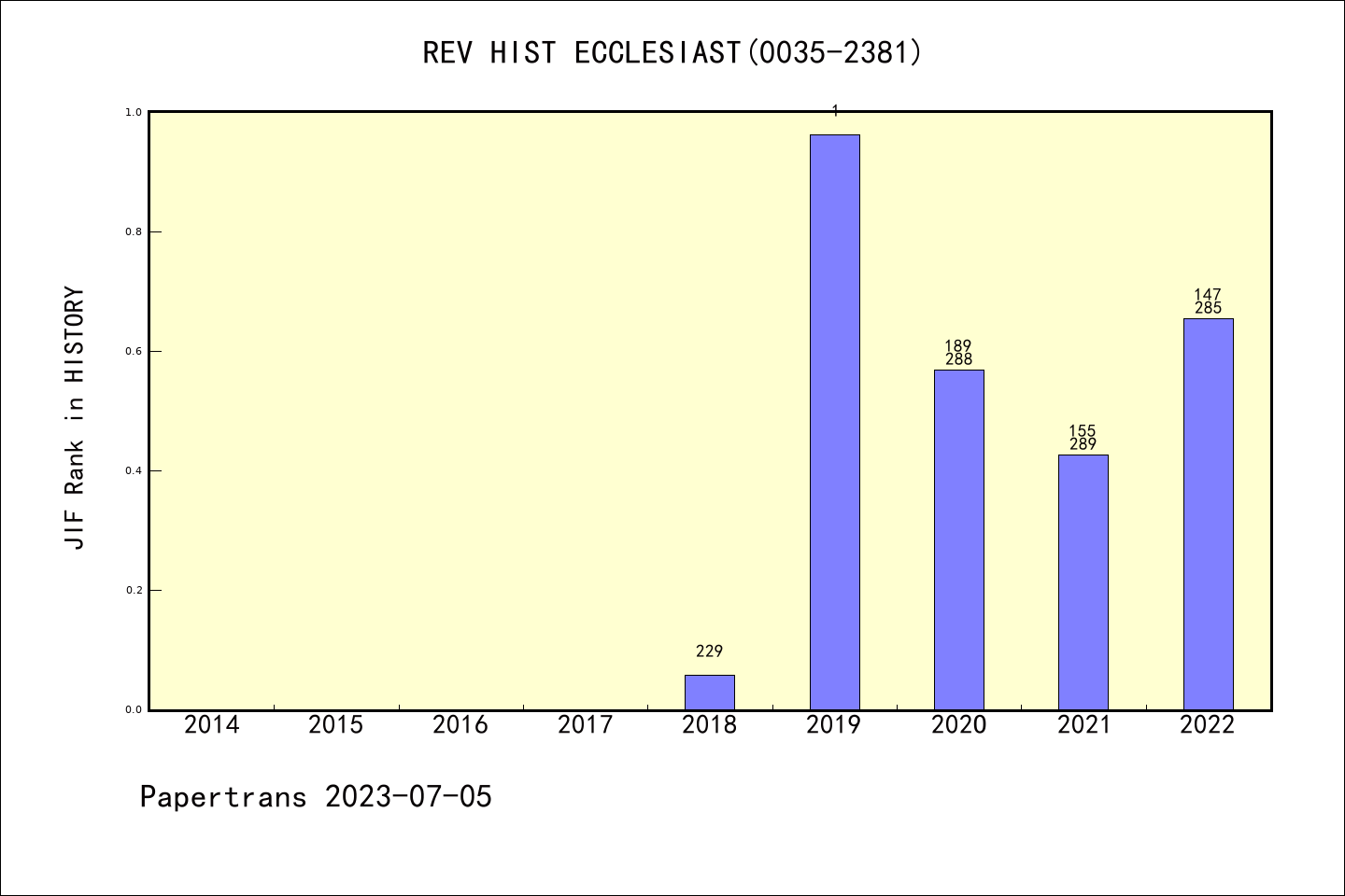 REVUE D HISTOIRE ECCLESIASTIQUE派博系数(Pindex)学科排名@AHCI历史