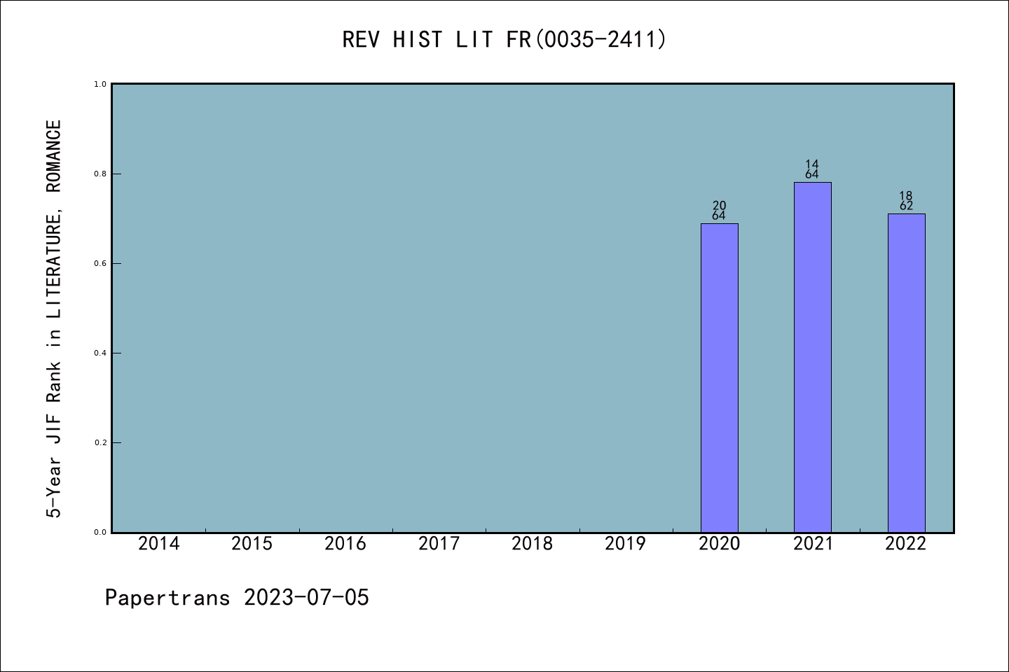 REV HIST LIT FR图表质量排名@AHCI文学、浪漫