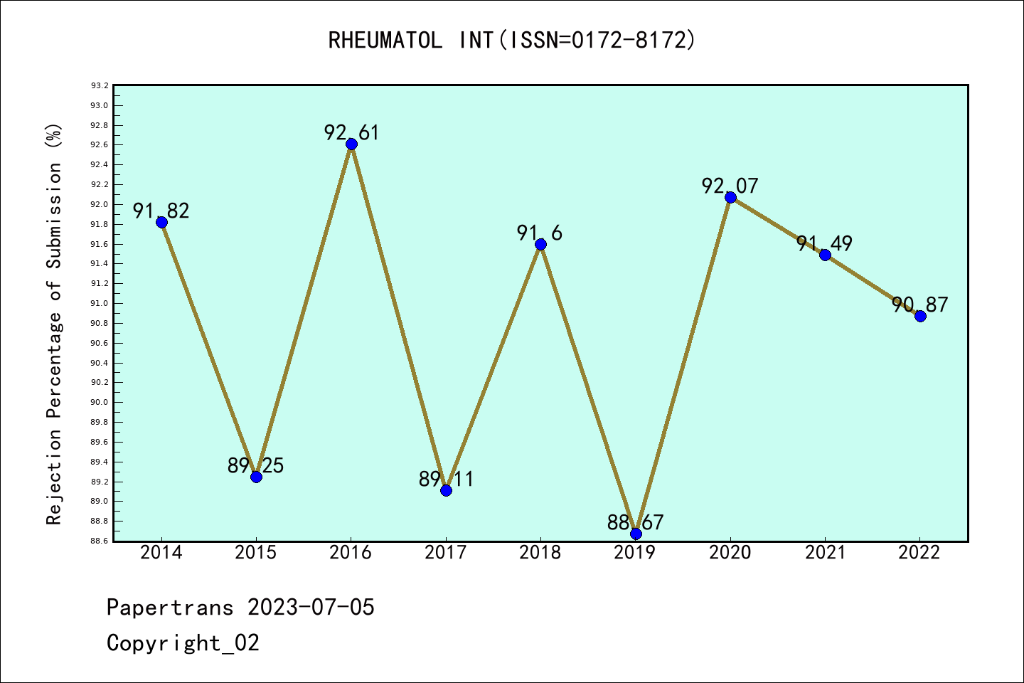 RHEUMATOLOGY INTERNATIONAL拒稿率学科排名@SCIE风湿病