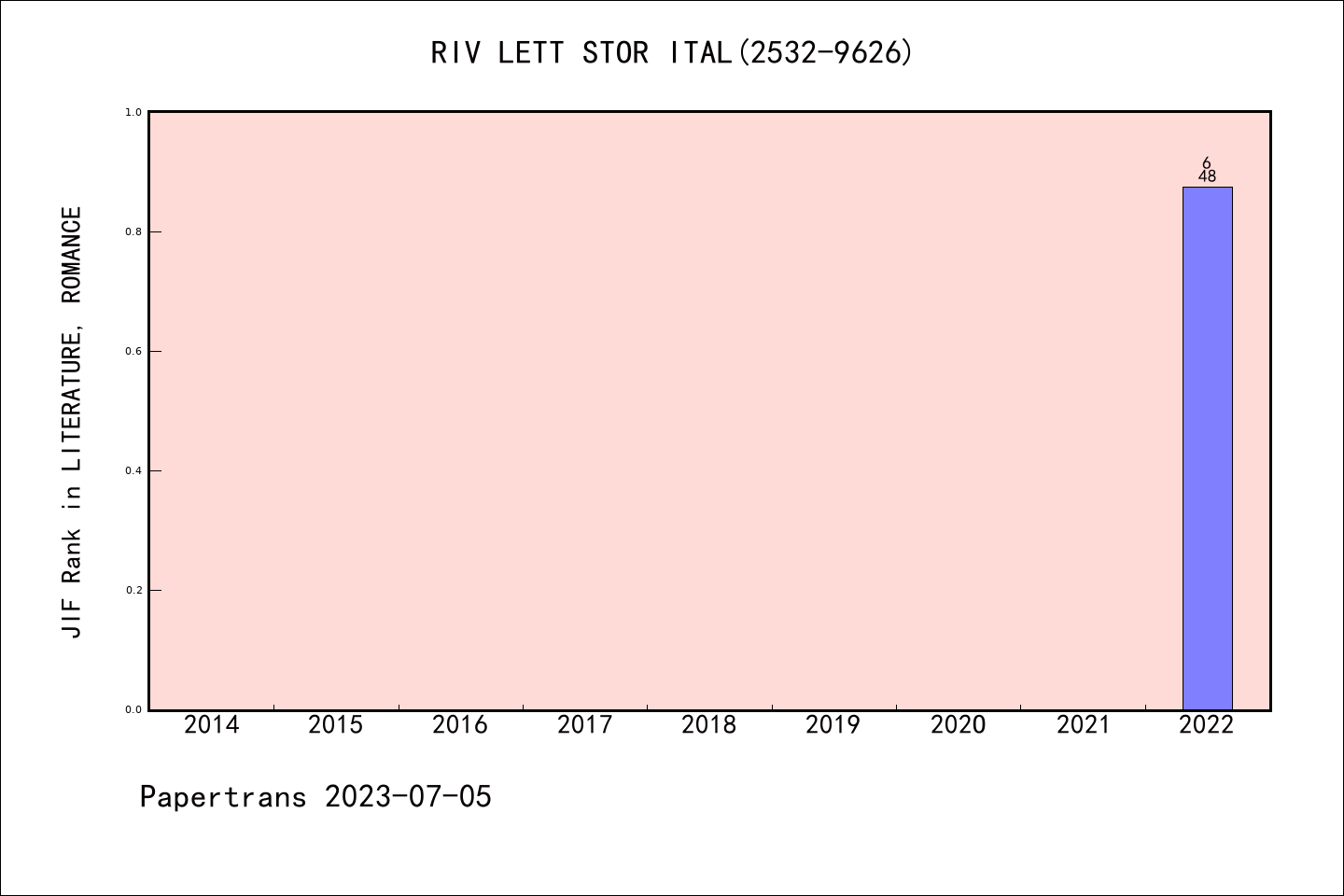 ESCI期刊RIVISTA DI LETTERATURA STORIOGRAFICA ITALIANA历年派博系数(Pindex)