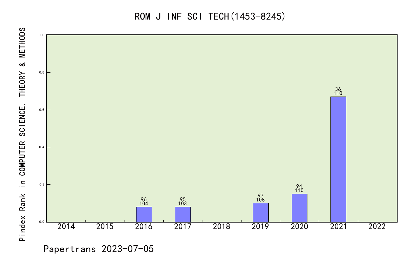 Romanian Journal of Information Science and Technology派博系数(Pindex)学科排名@SCIE计算机理论与方法