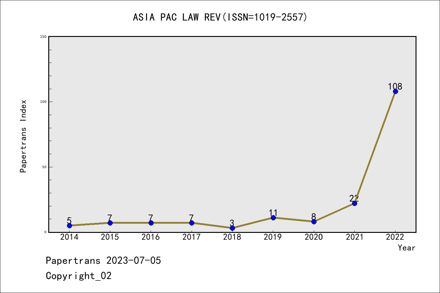 SSCI期刊Asia Pacific Law Review历年派博系数(Pindex)