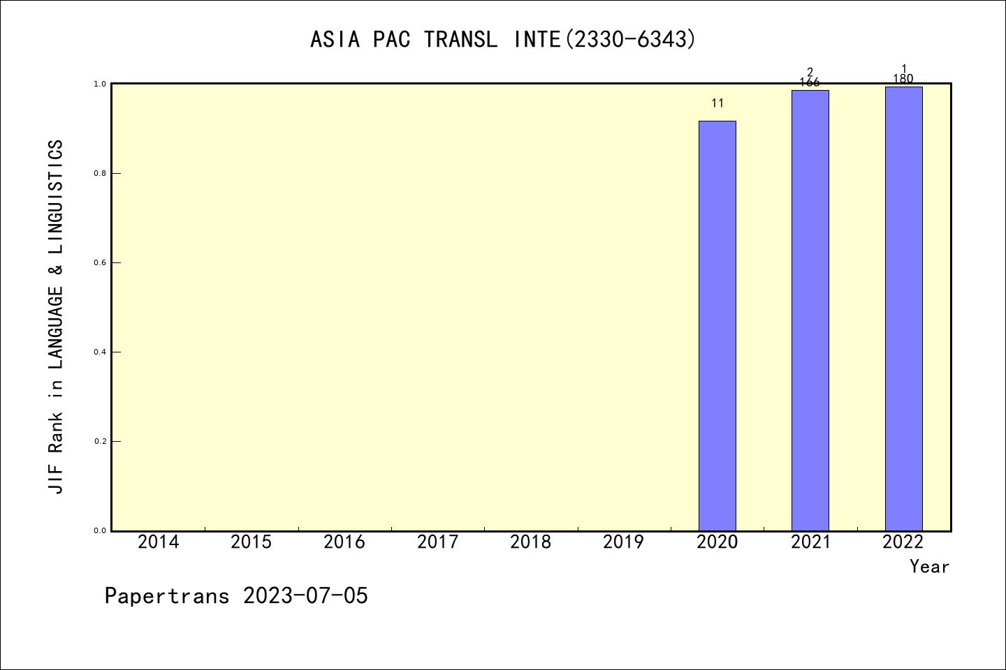 ESCI期刊Asia Pacific Translation and Intercultural Studies历年派博系数(Pindex)
