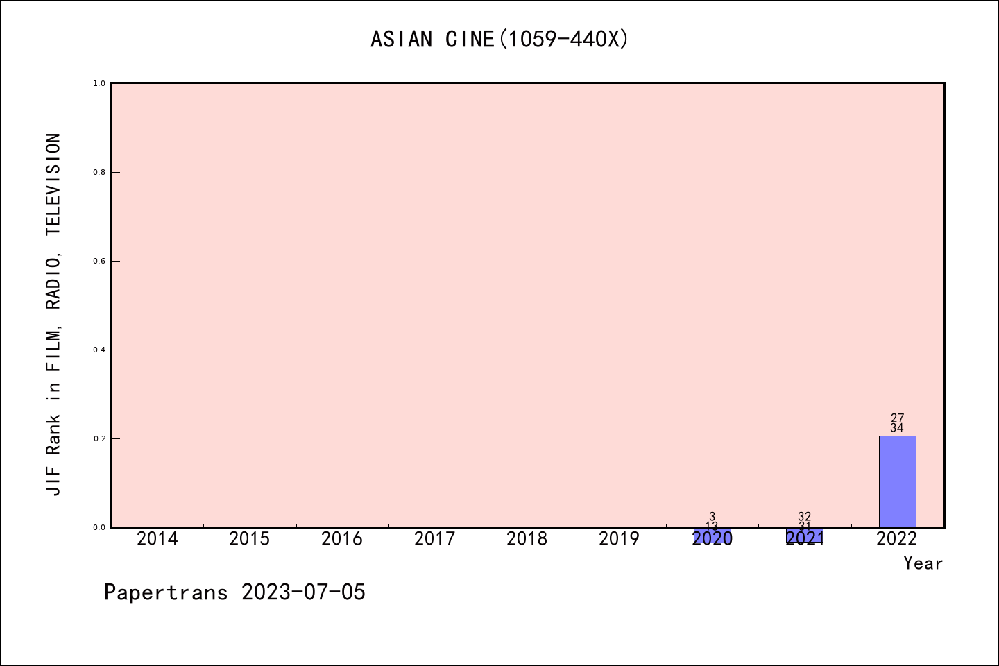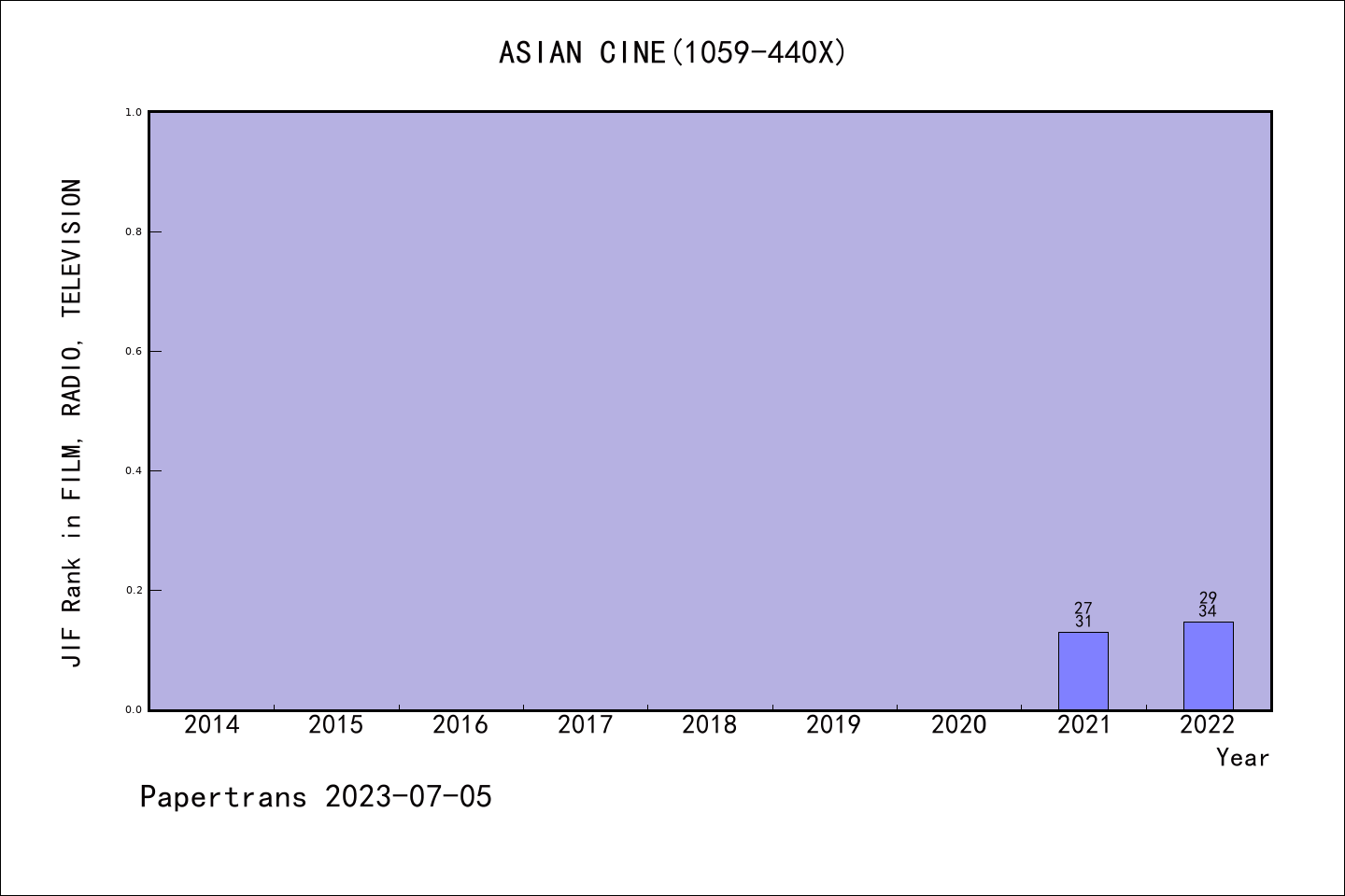 ESCI期刊Asian Cinema历年派博系数(Pindex)
