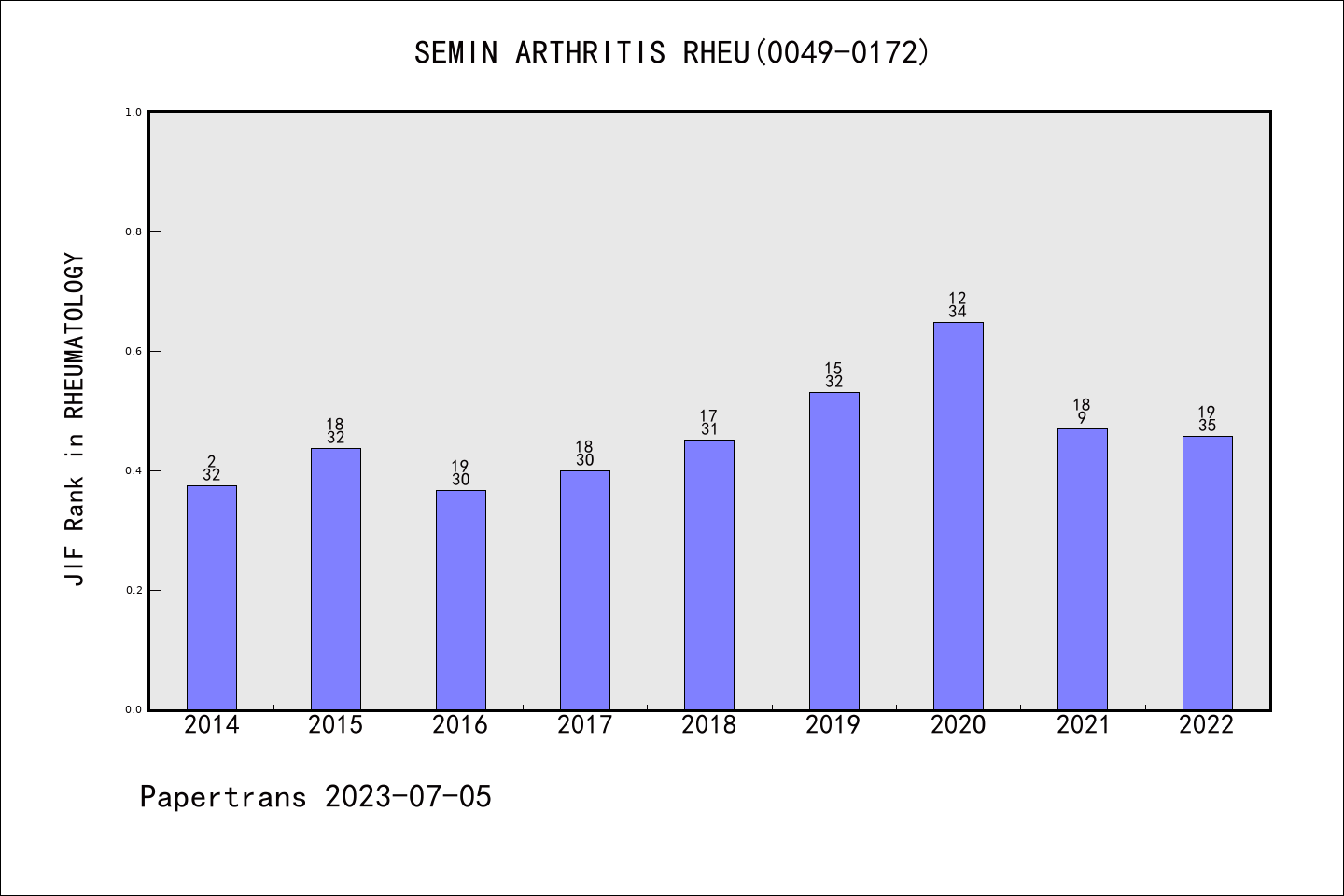 SEMIN ARTHRITIS RHEU图表质量排名@SCIE风湿病