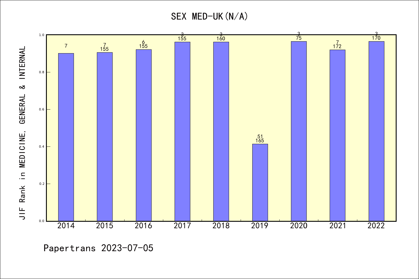 Sexual Medicine派博系数(Pindex)学科排名@SCIE内科及普通内科