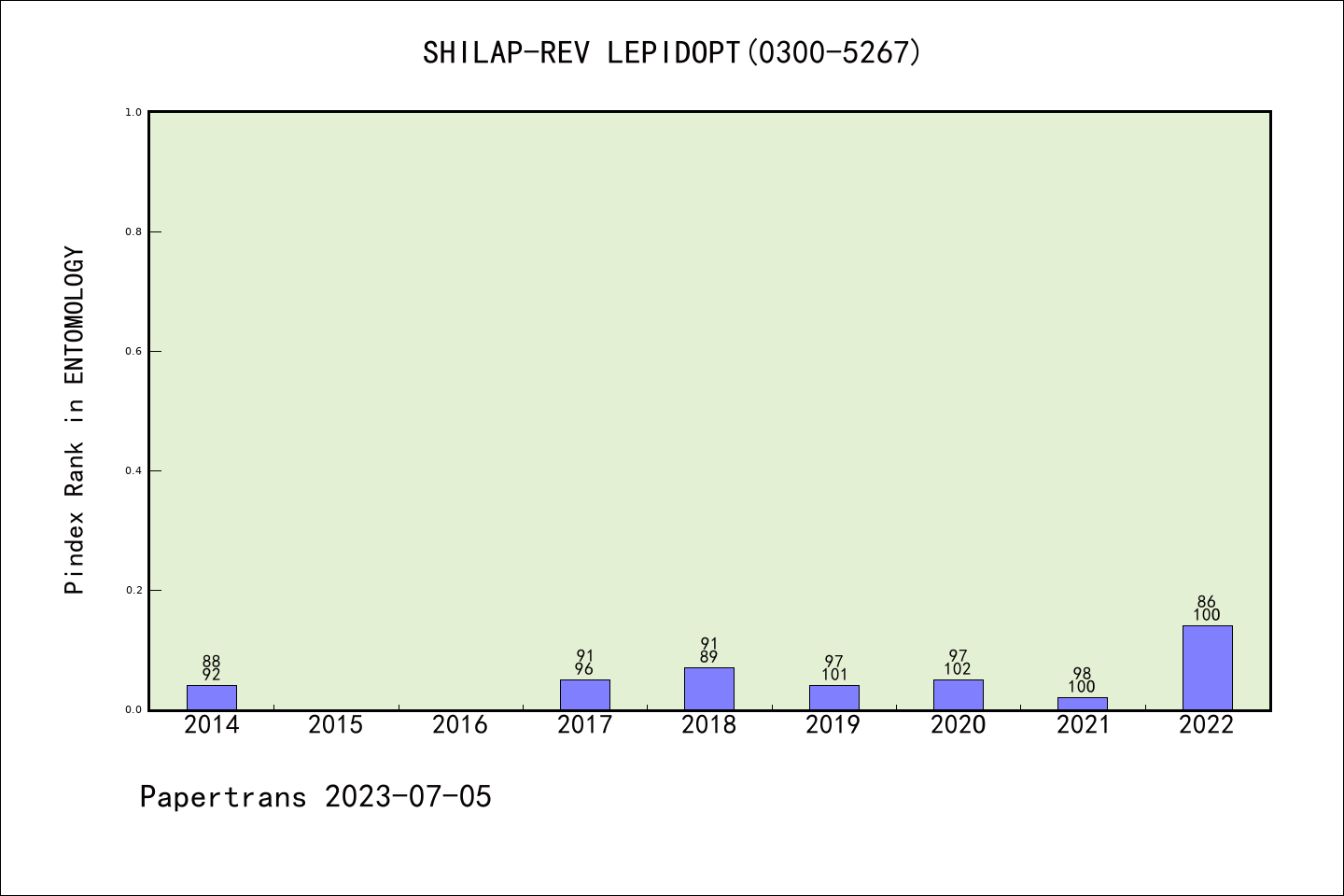 SHILAP-REVISTA DE LEPIDOPTEROLOGIA派博系数(Pindex)学科排名@SCIE昆虫学