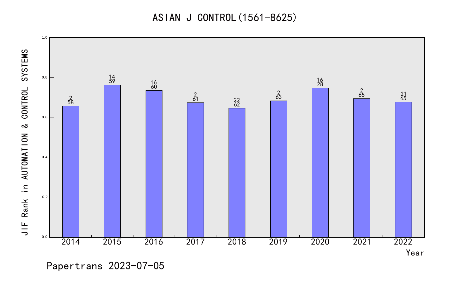 ASIAN J CONTROL图表质量排名@SCIE自动化和控制系统