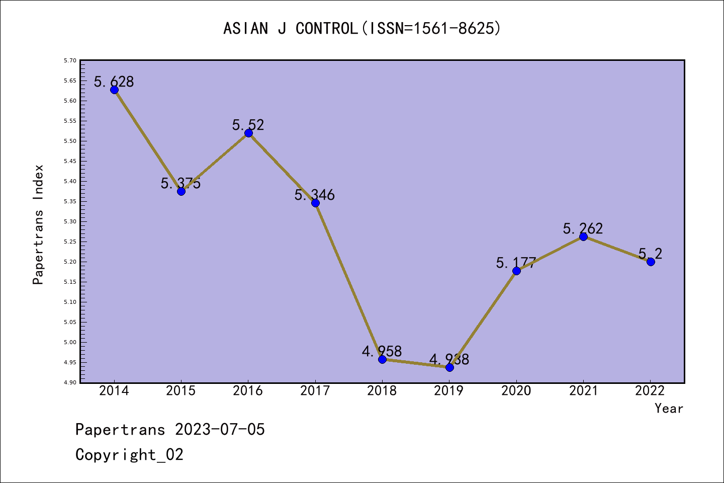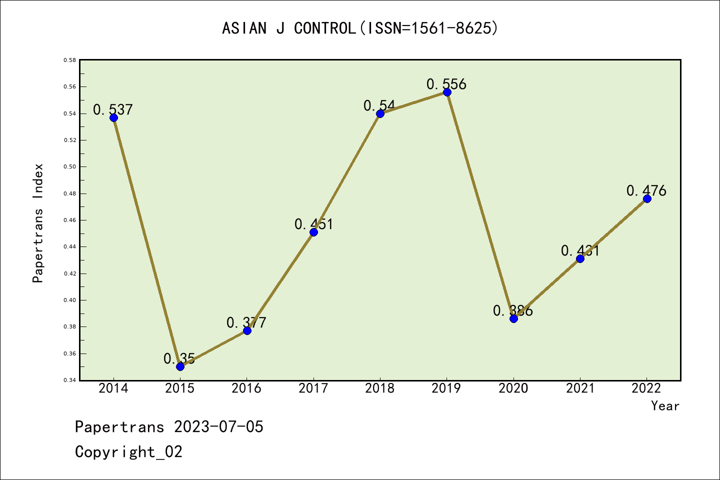SCIE期刊ASIAN JOURNAL OF CONTROL历年派博系数(Pindex)