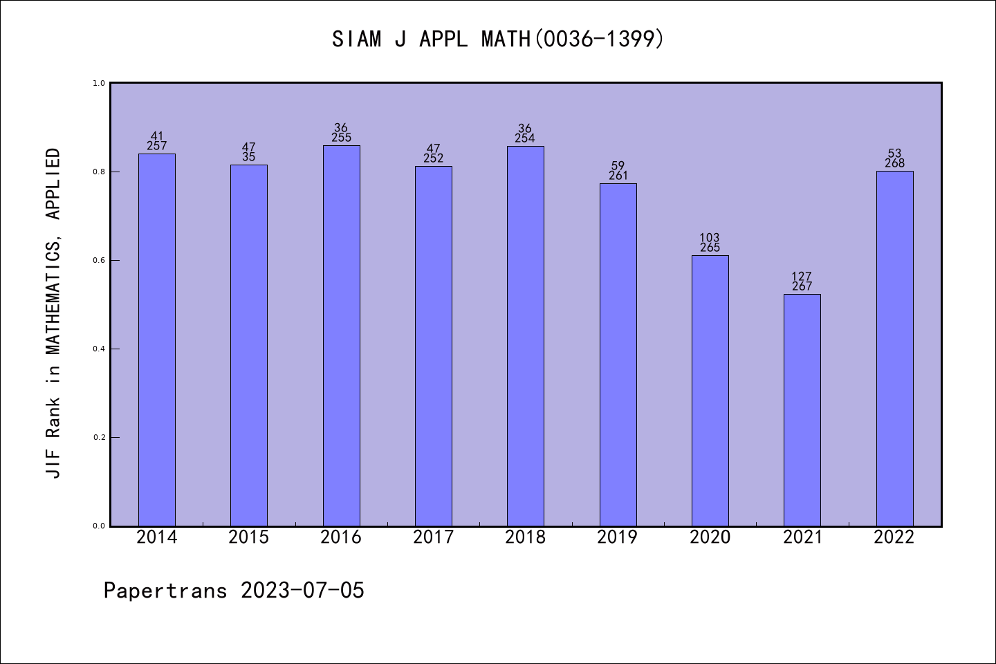 SCIE期刊SIAM JOURNAL ON APPLIED MATHEMATICS历年派博系数(Pindex)