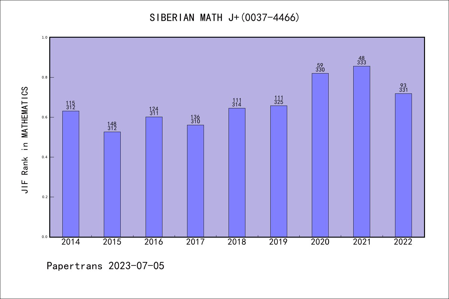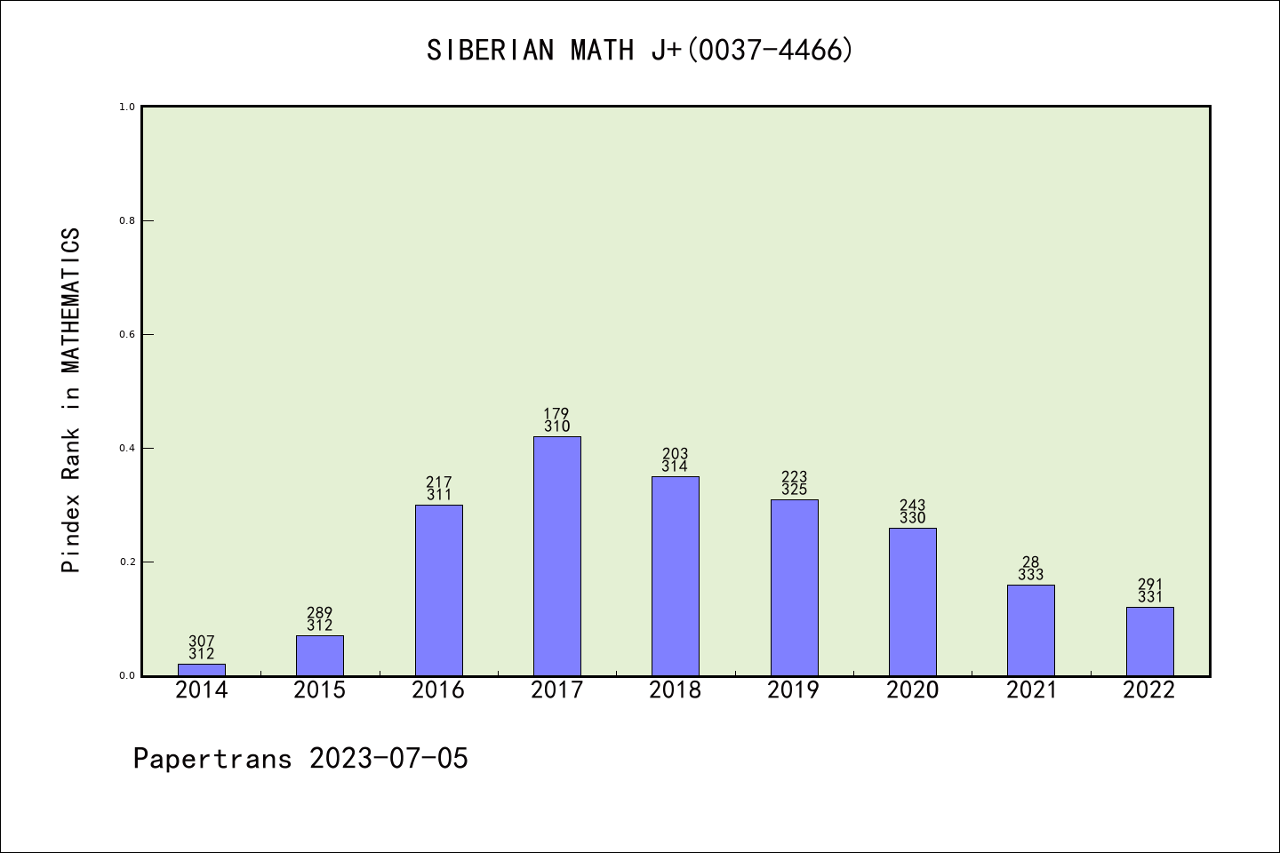 SIBERIAN MATHEMATICAL JOURNAL派博系数(Pindex)学科排名@SCIE数学