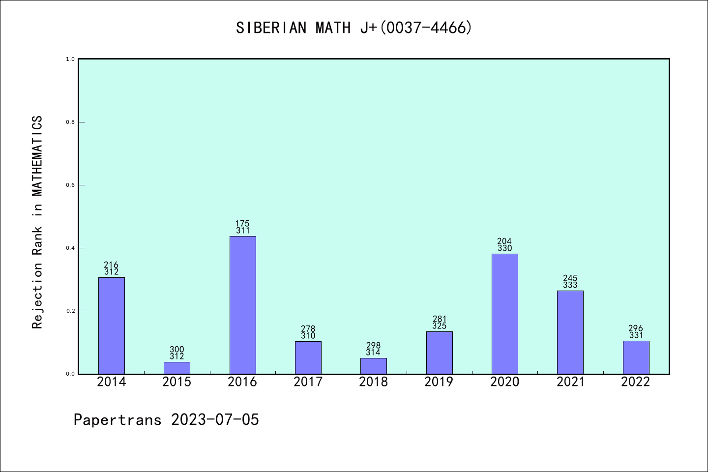 SIBERIAN MATHEMATICAL JOURNAL拒稿率学科排名@SCIE数学