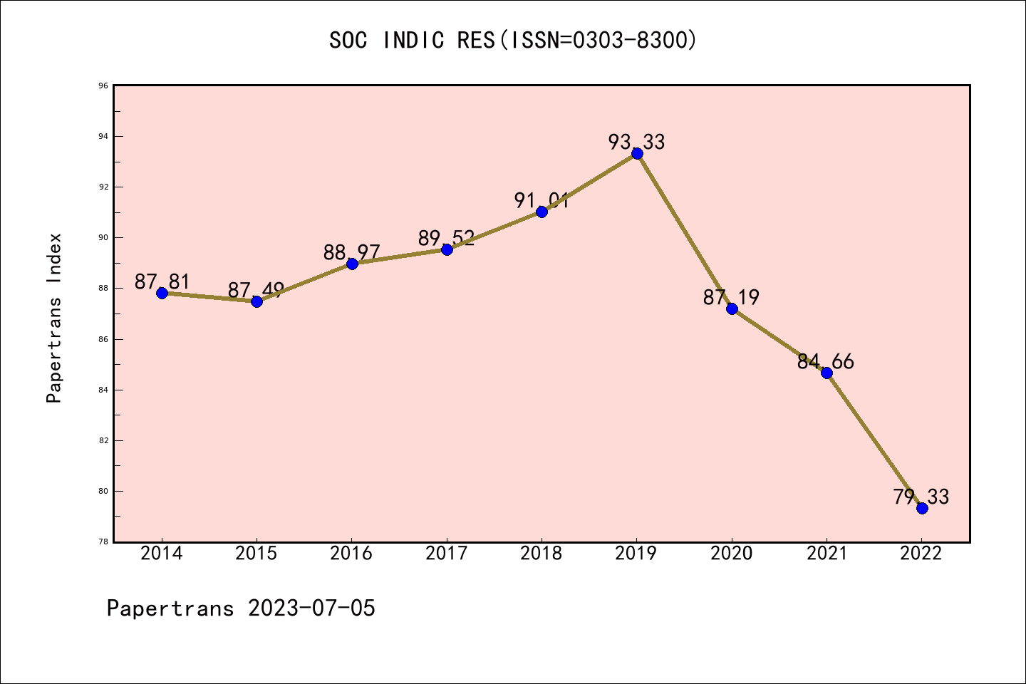 SSCI期刊SOCIAL INDICATORS RESEARCH历年派博系数(Pindex)