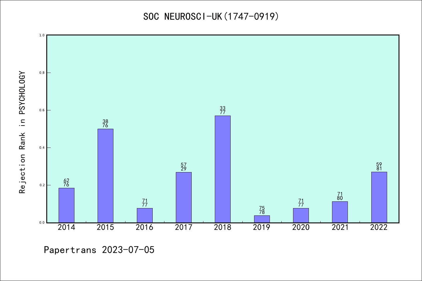 Social Neuroscience拒稿率学科排名@SCIE心理学
