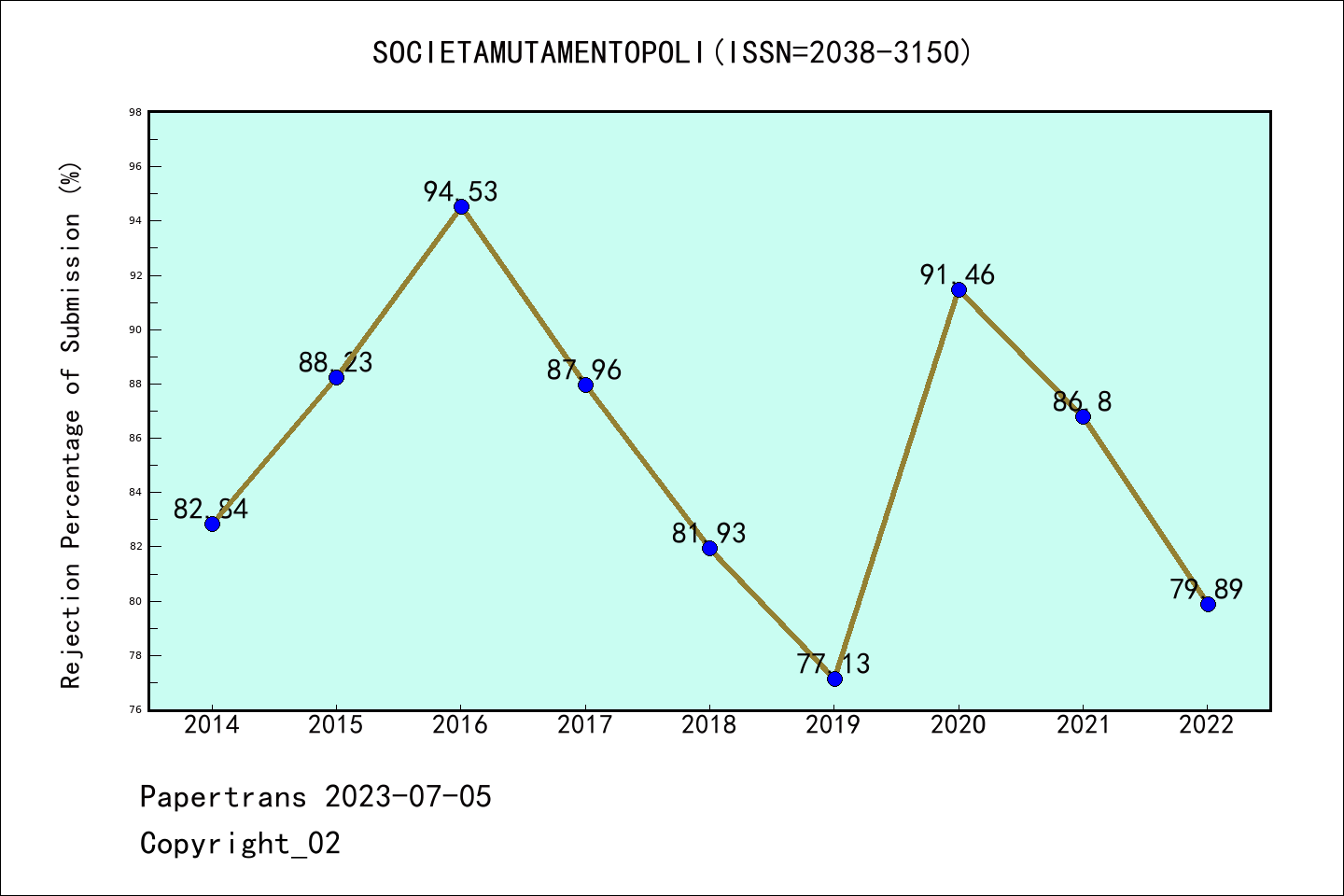 拒稿 占比 | ESCI期刊SocietaMutamentoPolitica-Rivista Italiana di Sociologia历年拒稿占比