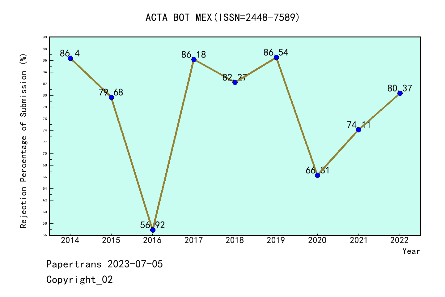 Acta Botanica Mexicana拒稿率学科排名@SCIE植物科学