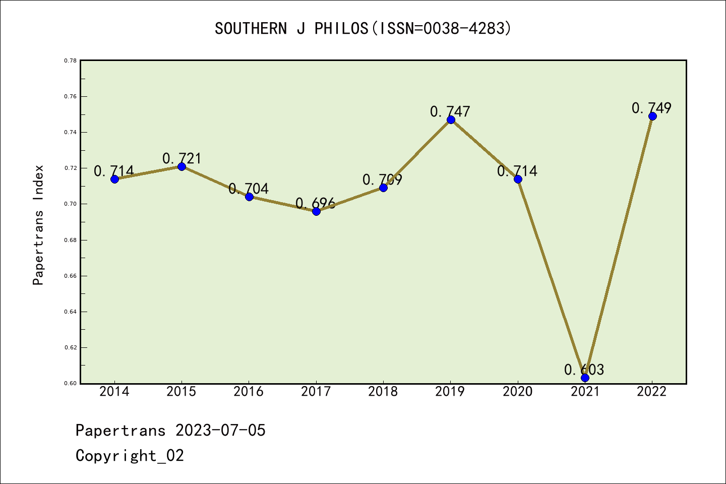 AHCI期刊SOUTHERN JOURNAL OF PHILOSOPHY历年派博系数(Pindex)