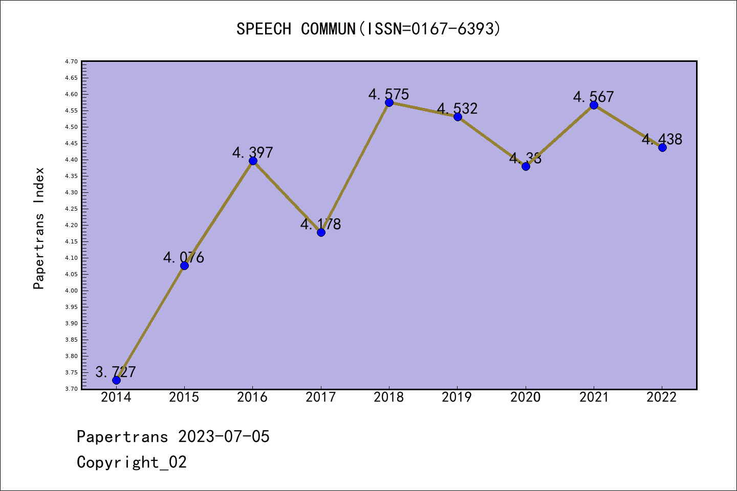 SCIE期刊SPEECH COMMUNICATION历年派博系数(Pindex)