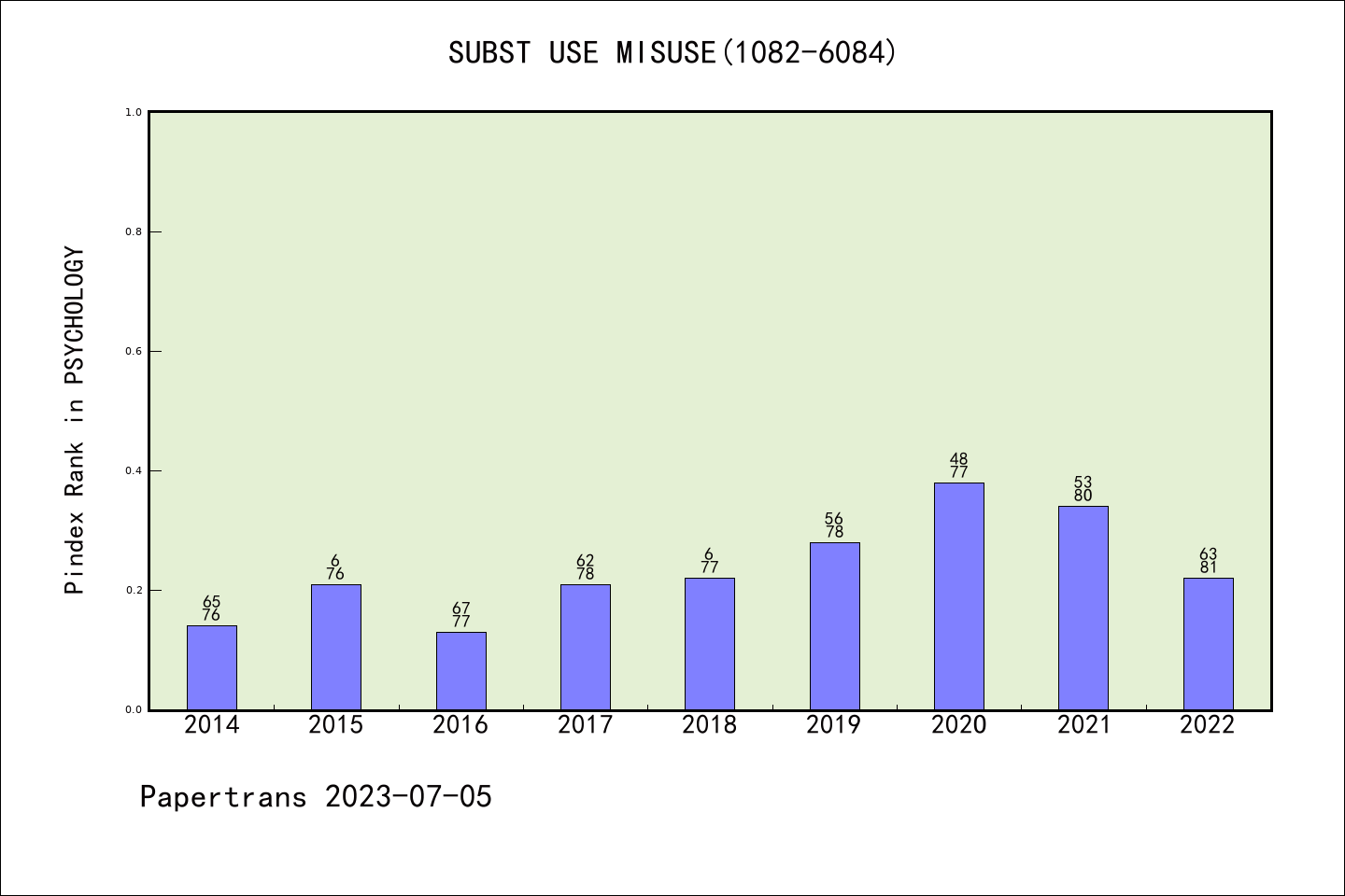 SUBSTANCE USE & MISUSE派博系数(Pindex)学科排名@SCIE心理学