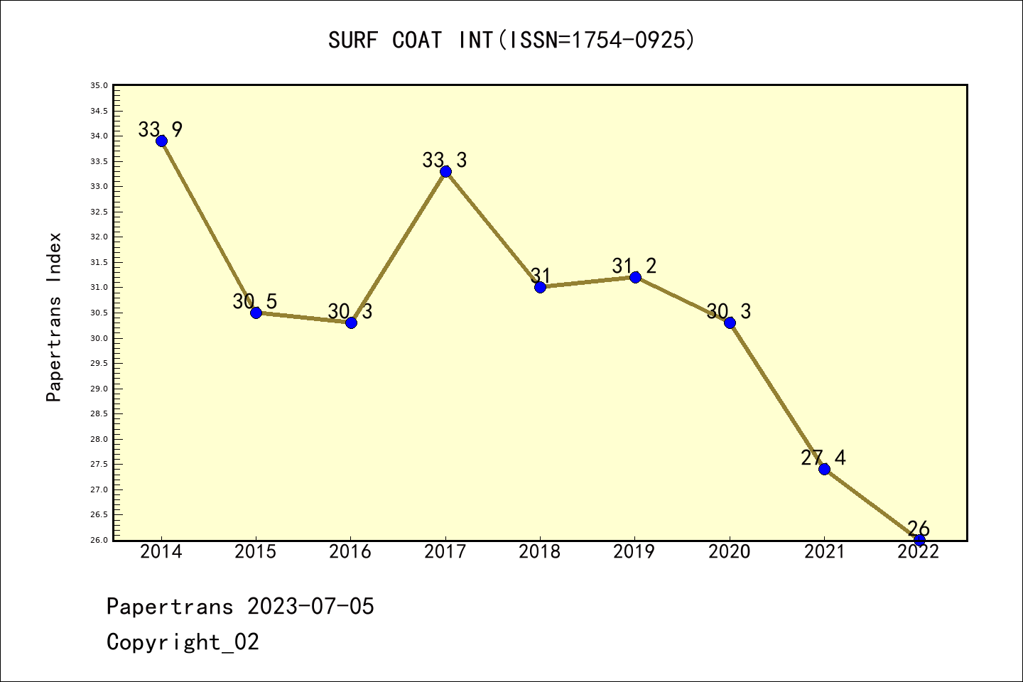 SCIE期刊SURFACE COATINGS INTERNATIONAL历年派博系数(Pindex)