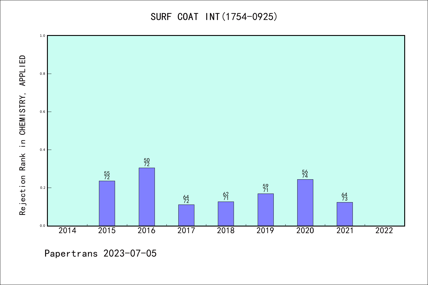 SURF COAT INT图表质量排名@SCIE化学,应用