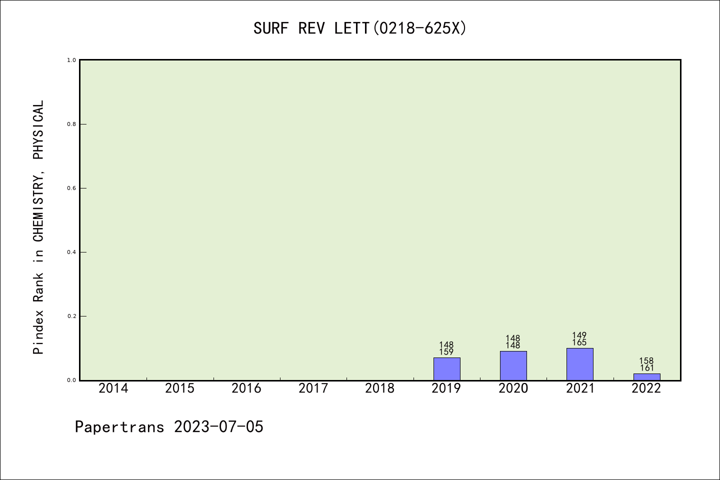 SCIE期刊SURFACE REVIEW AND LETTERS历年派博系数(Pindex)