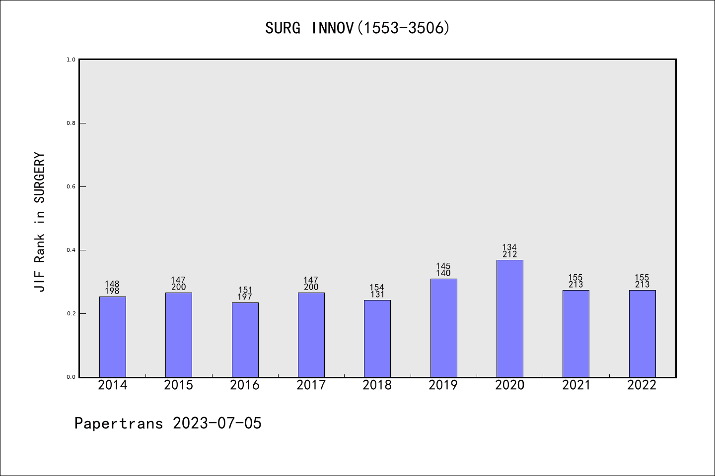 Surgical Innovation派博系数(Pindex)学科排名@SCIE外科手术