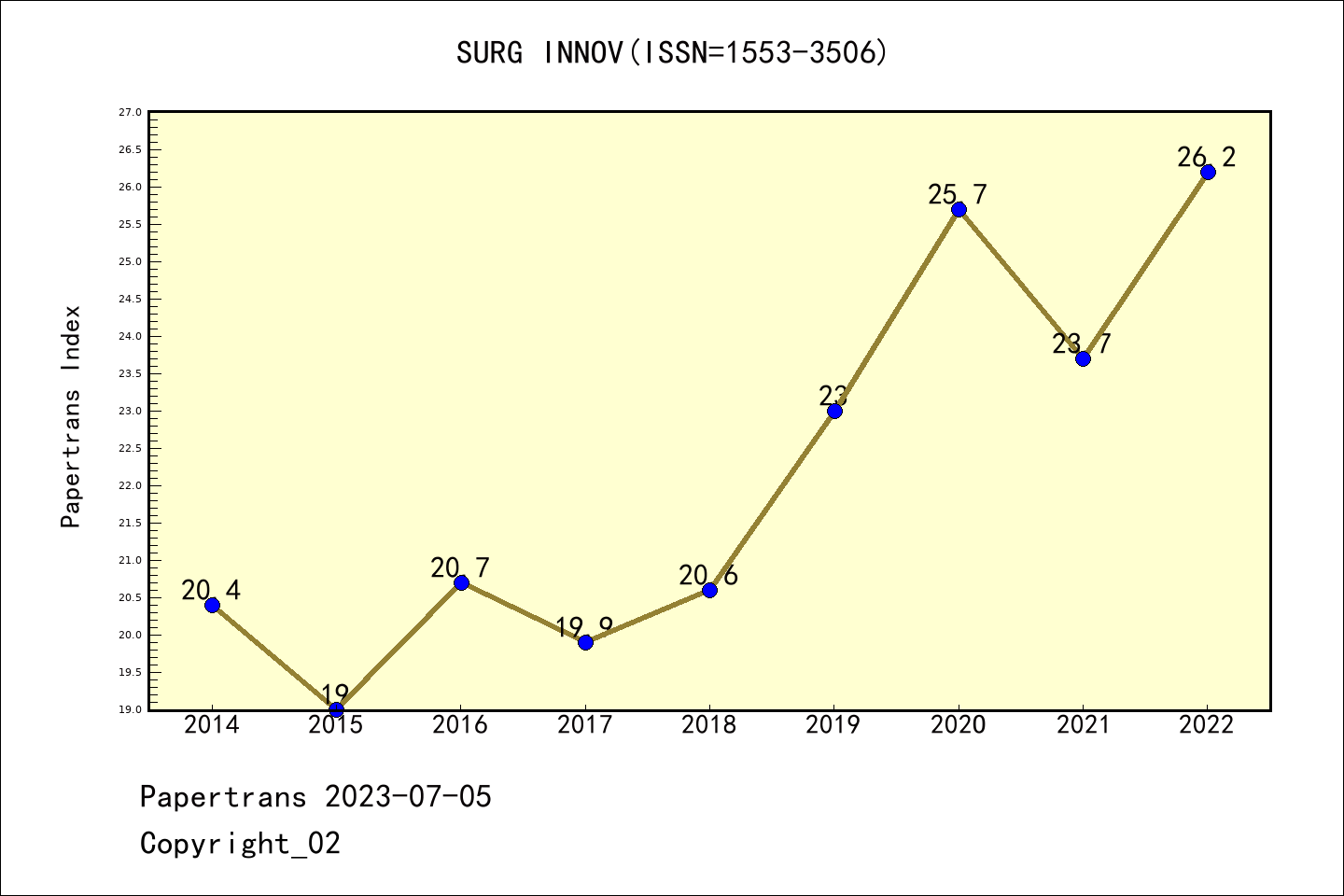 SCIE期刊Surgical Innovation历年派博系数(Pindex)