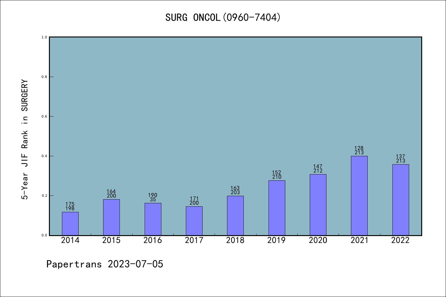 SURGICAL ONCOLOGY-OXFORD派博系数(Pindex)学科排名@SCIE外科手术