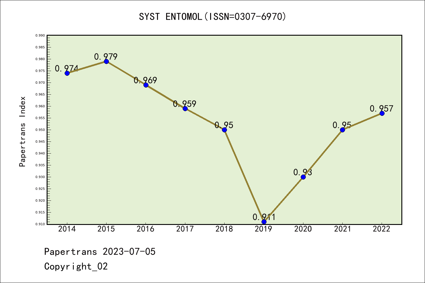 SCIE期刊SYSTEMATIC ENTOMOLOGY历年派博系数(Pindex)