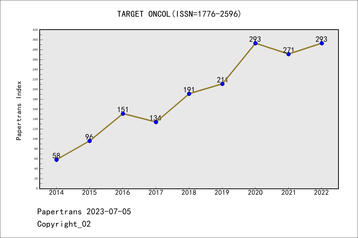 SCIE期刊Targeted Oncology历年派博系数(Pindex)