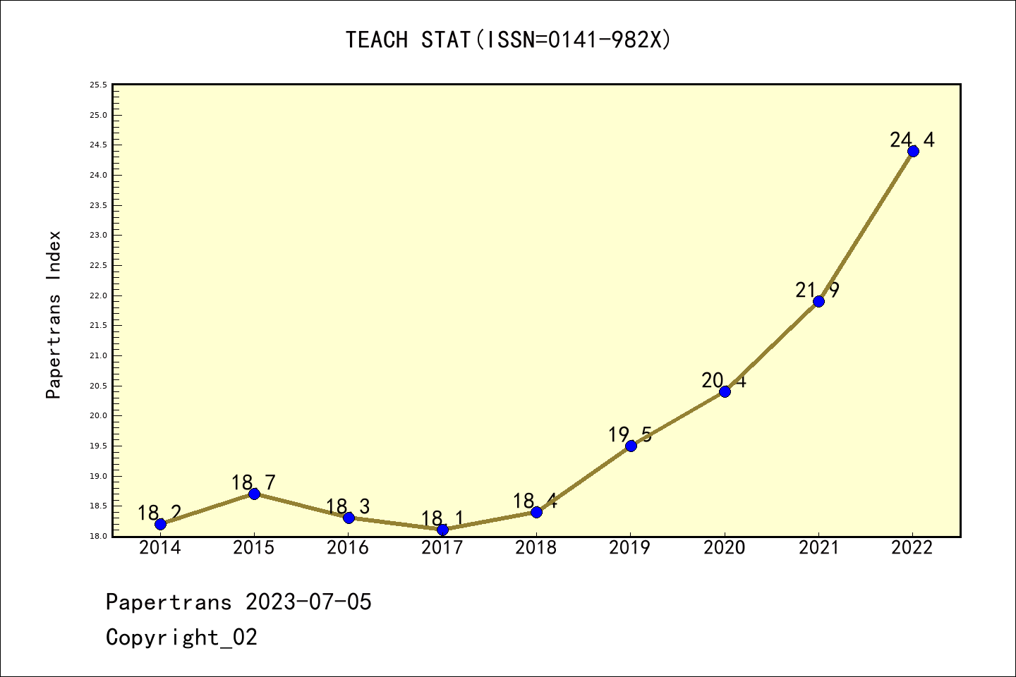 ESCI期刊Teaching Statistics历年派博系数(Pindex)