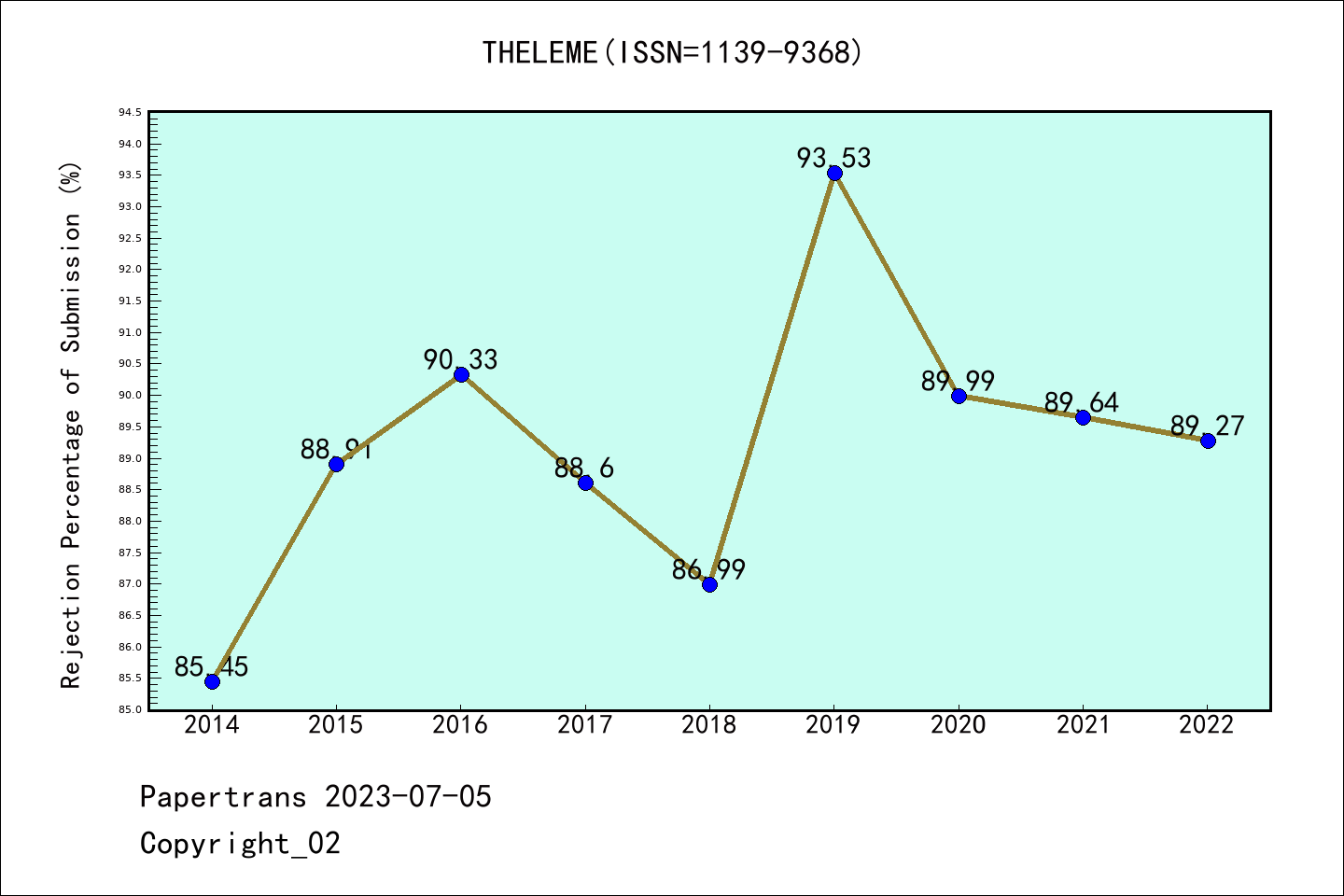 拒稿 占比 | ESCI期刊Theleme-Revista Complutense de Estudios Franceses历年拒稿占比