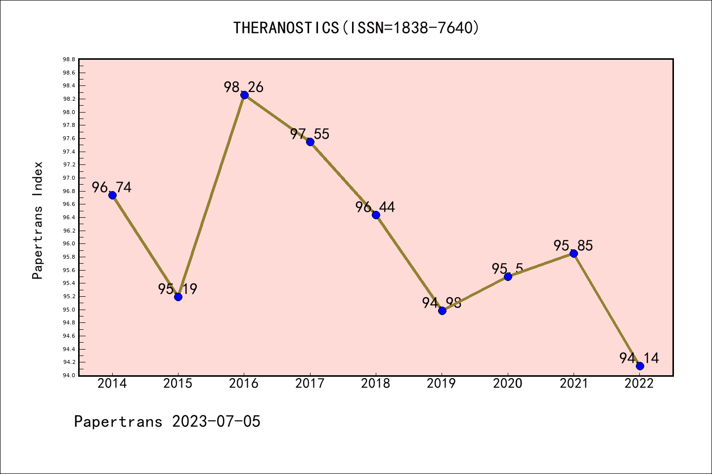 SCIE期刊Theranostics历年派博系数(Pindex)