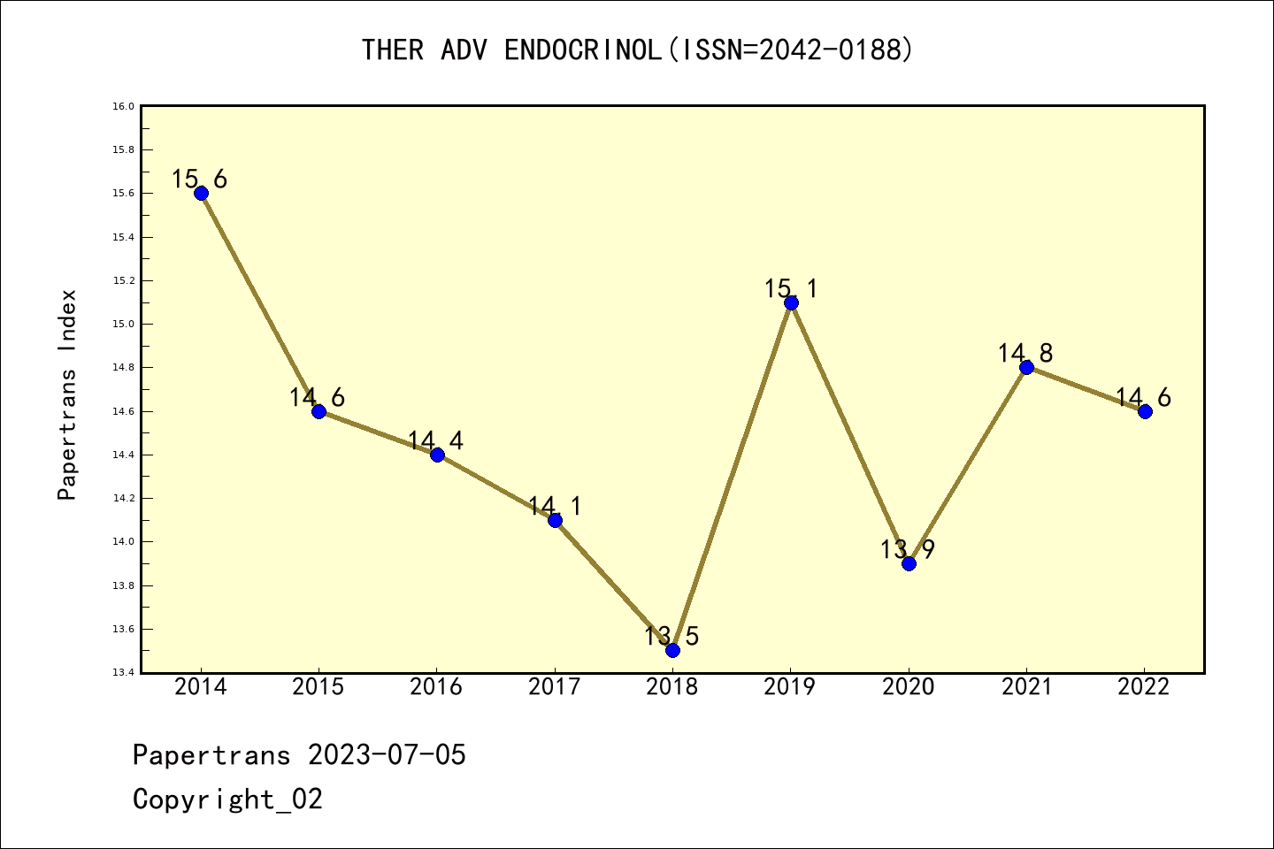 SCIE期刊Therapeutic Advances in Endocrinology and Metabolism历年派博系数(Pindex)