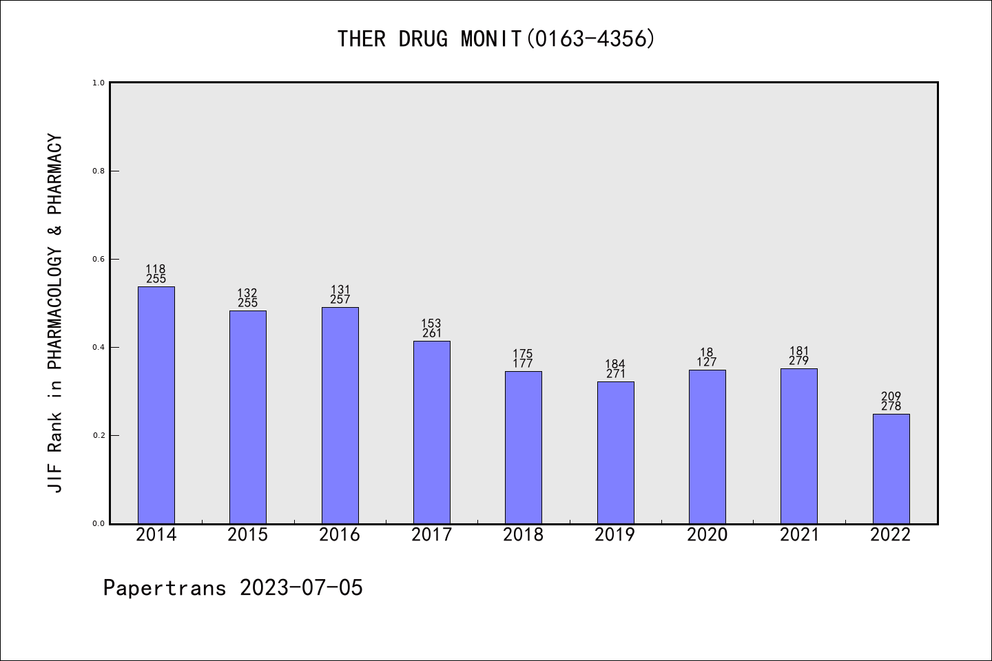 SCIE期刊THERAPEUTIC DRUG MONITORING历年派博系数(Pindex)