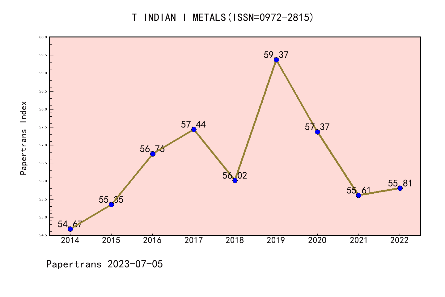 SCIE期刊TRANSACTIONS OF THE INDIAN INSTITUTE OF METALS历年派博系数(Pindex)