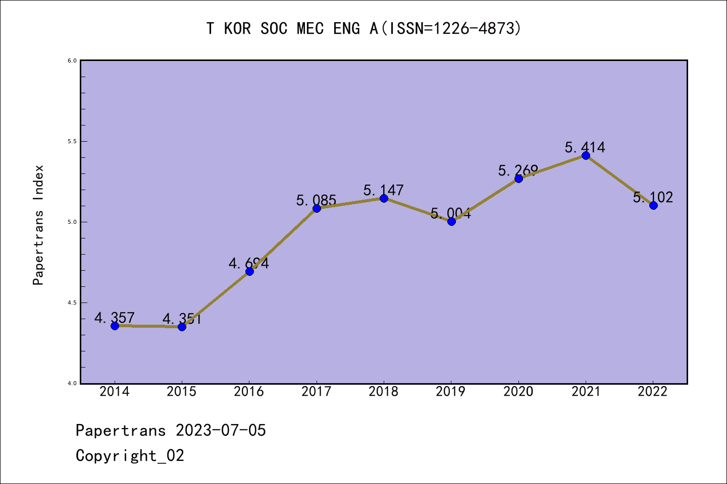 ESCI期刊Transactions of the Korean Society of Mechanical Engineers A历年派博系数(Pindex)