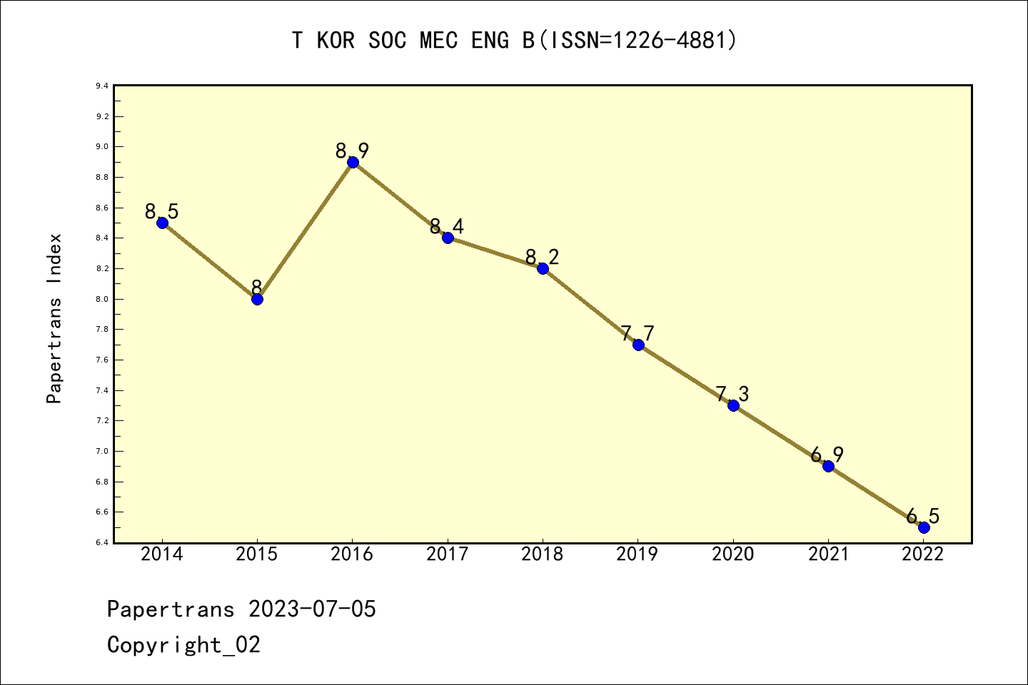 ESCI期刊Transactions of the Korean Society of Mechanical Engineers B历年派博系数(Pindex)