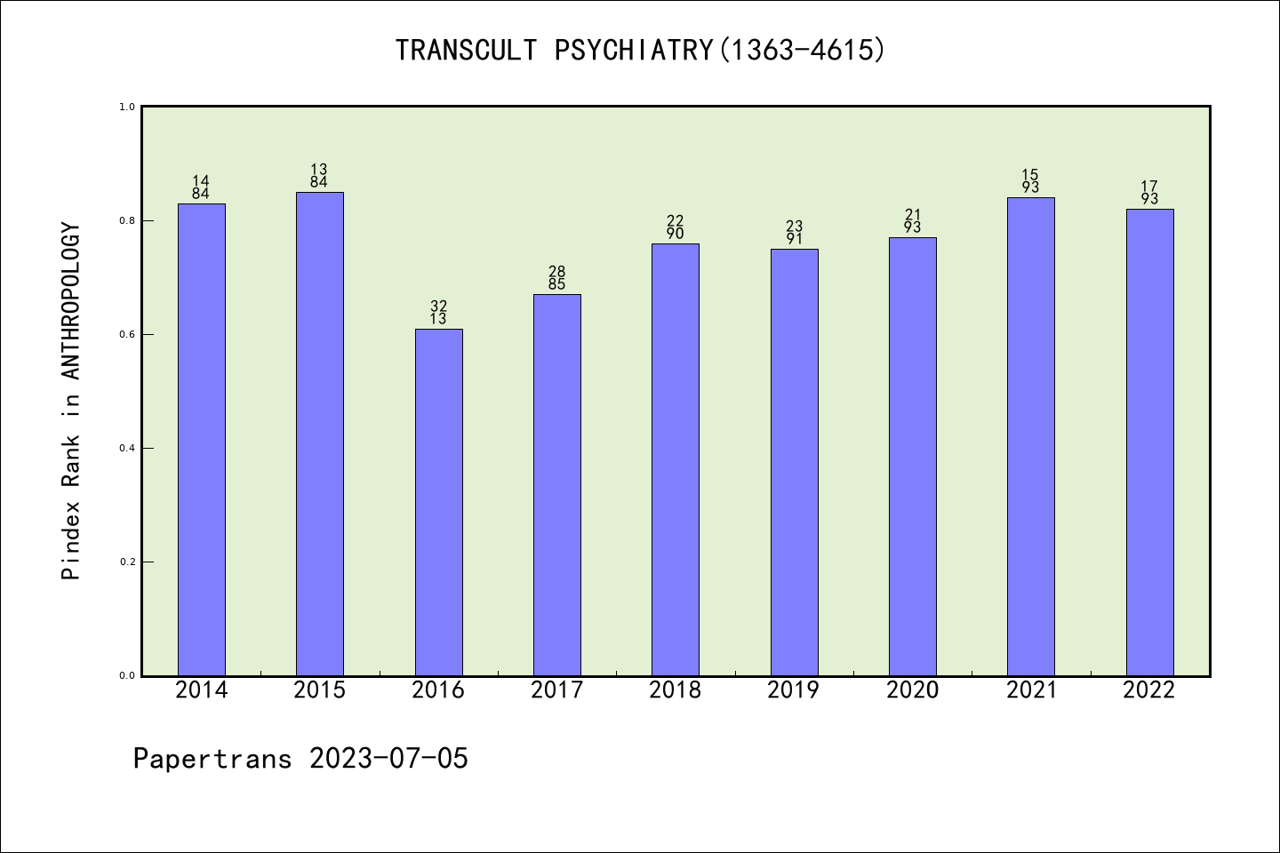 SSCI期刊Transcultural Psychiatry历年派博系数(Pindex)