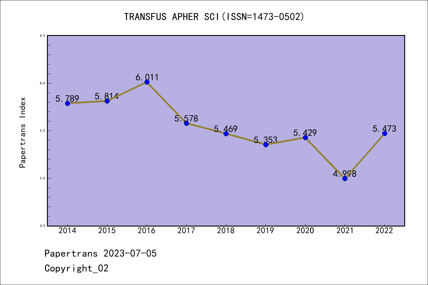 SCIE期刊TRANSFUSION AND APHERESIS SCIENCE历年派博系数(Pindex)