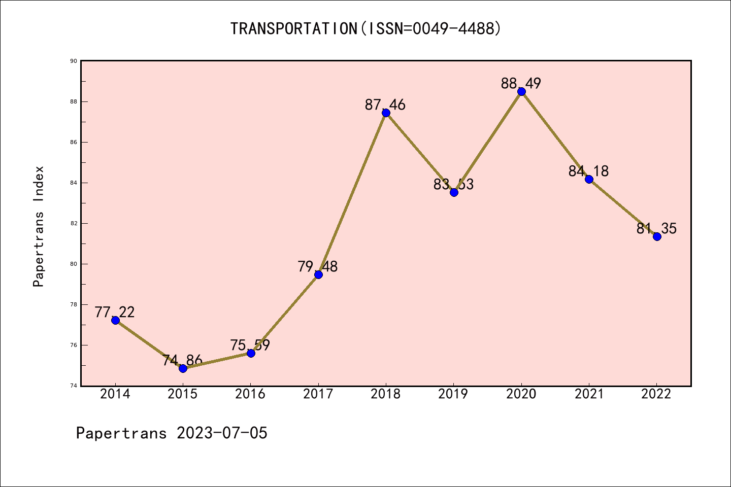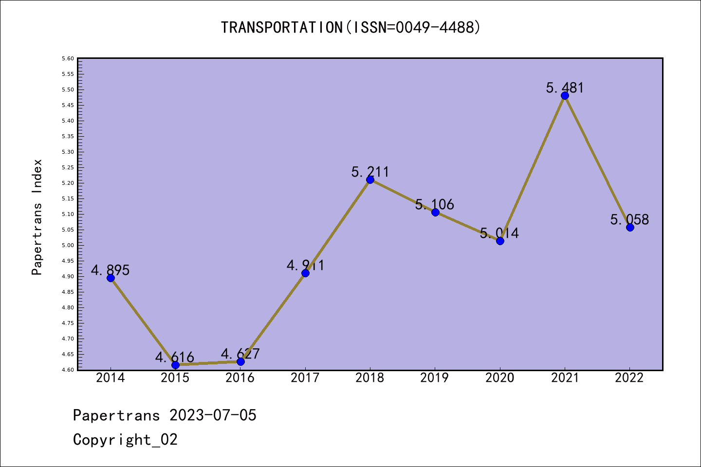 SSCI期刊TRANSPORTATION历年派博系数(Pindex)