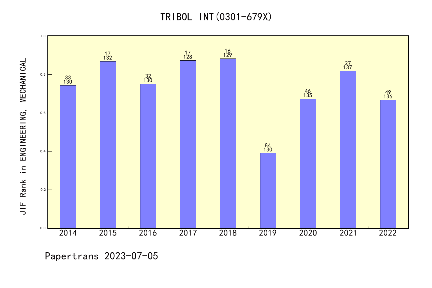 TRIBOL INT图表质量排名@SCIE工程、机械