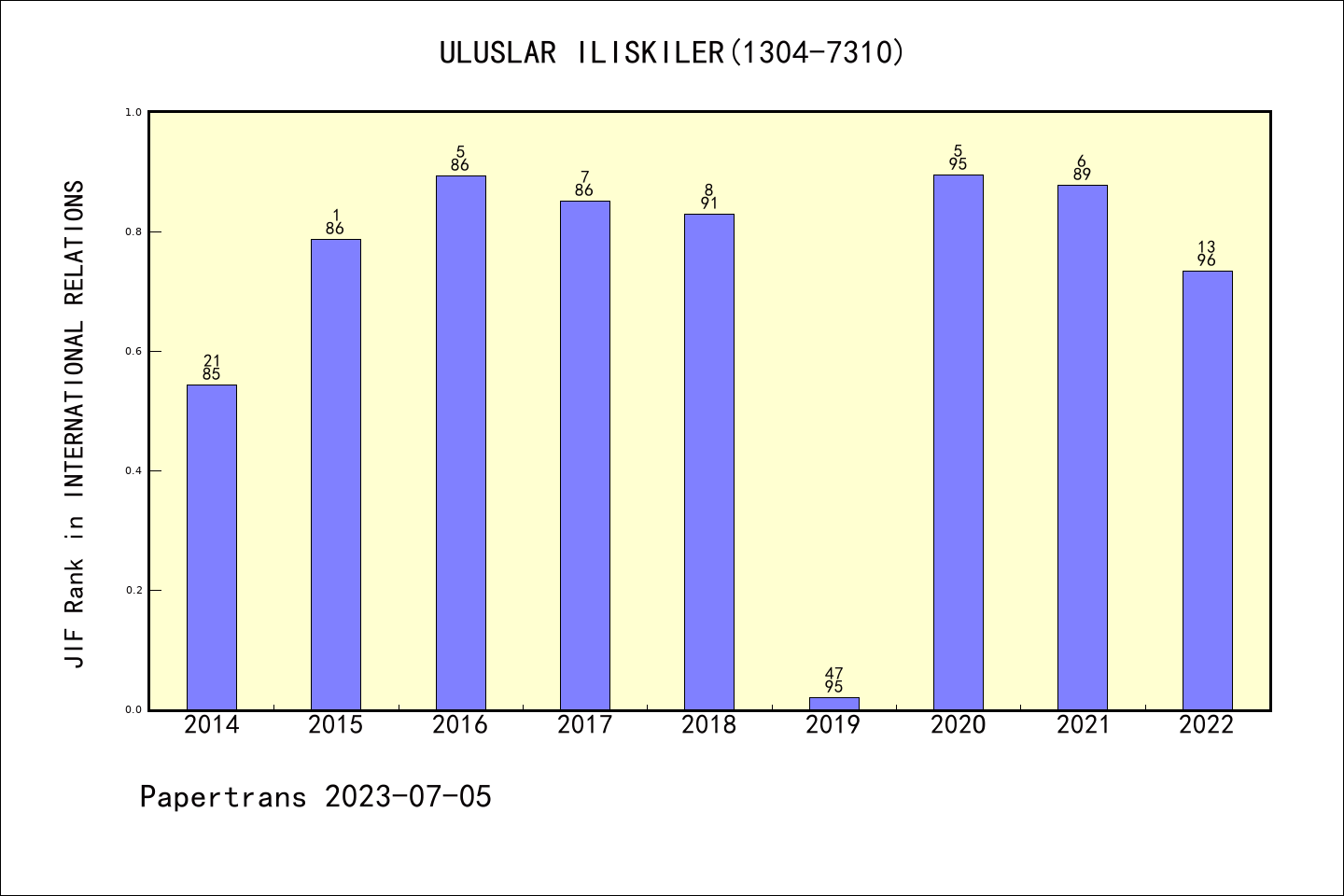 SSCI期刊Uluslararasi Iliskiler-International Relations历年派博系数(Pindex)