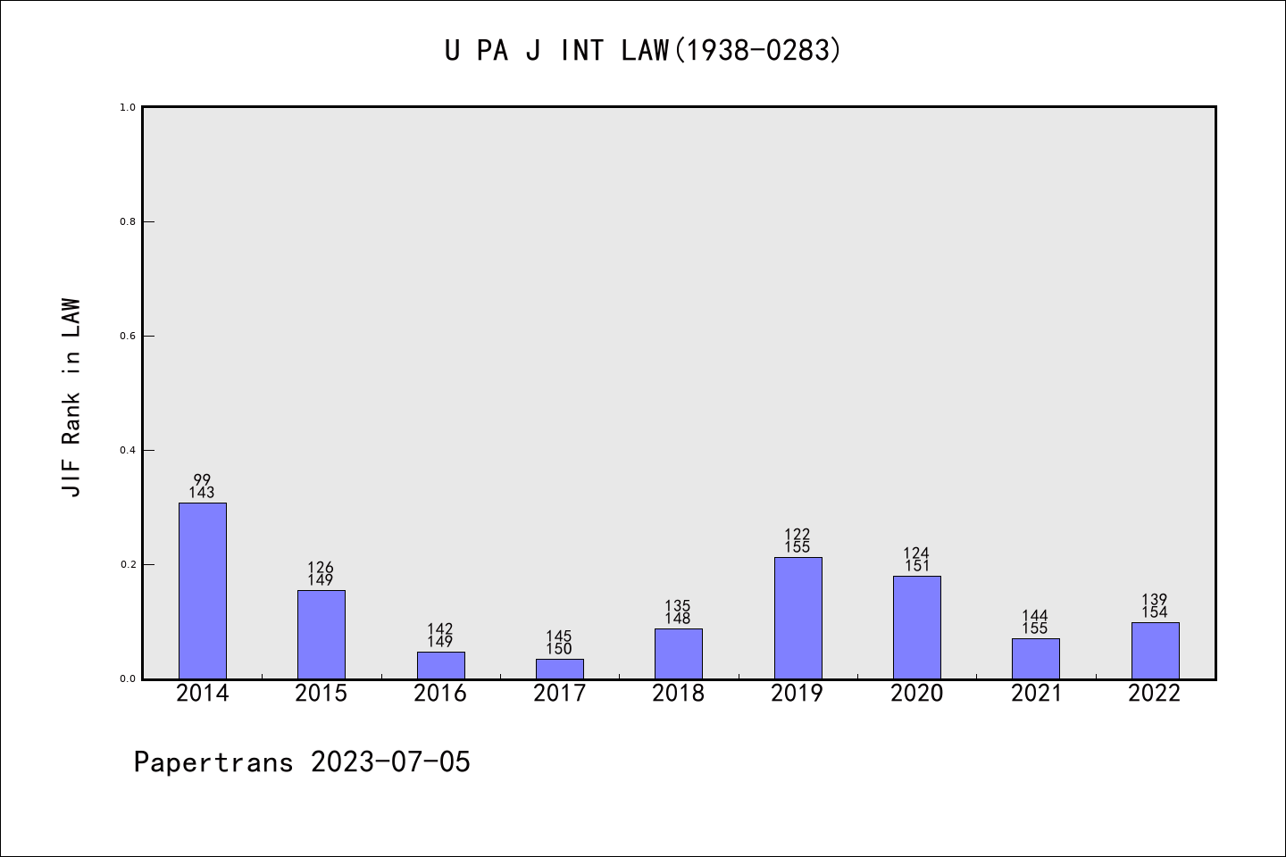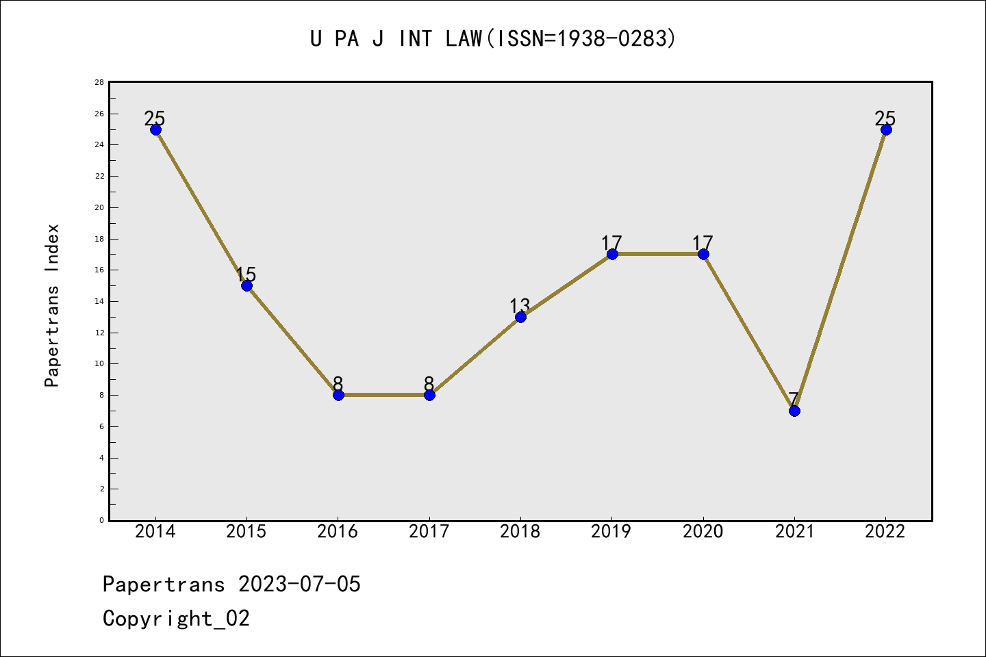 SSCI期刊University of Pennsylvania Journal of International Law历年派博系数(Pindex)